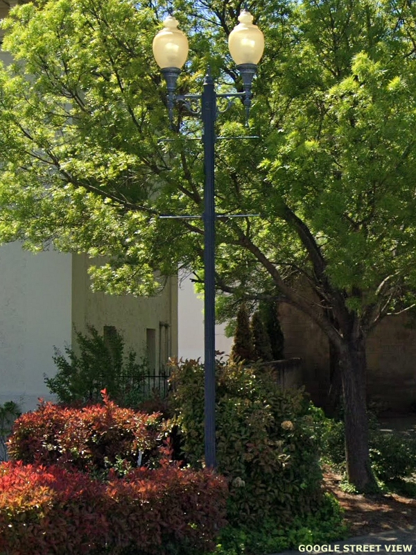 (This is Part Eleven of a Street View tour of vintage and historical street and pedestrian lights for enthusiasts to view and in hopes of encouraging cities and towns to preserve some of these old luminaires and electroliers, or at least choose replicas that reflect the character of historic districts when modernizing their lighting. The images link to Google Street Views to make it easy to "look around" if an image interests you. The photos begin in