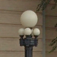 Opal glass singles on what appear to be marble posts. (Public Library, Elm Street)