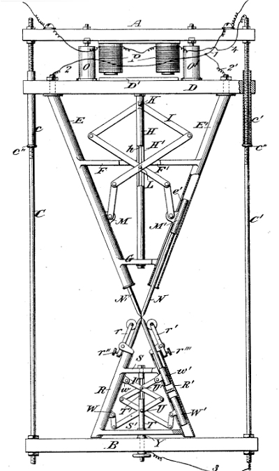 ![]() One problem associated with the ratchet type system was that if the arc did not stabilize when the ratchet actuated and the electrode moved, the current through the ratchet coil could remain high and the ratchet would be stuck in its actuated position until the circuit was turned off during the day. However the ratchet system seemed more immediately responsive to changes in the arc than the clockwork system.