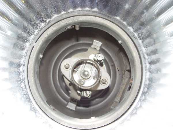 Inside view of J-slots, pins and set screw.