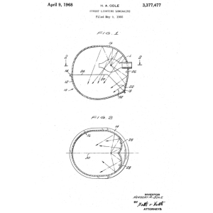 The mid 1960s saw many refinements and innovations. There are so many patents that we only have room for one year per page. There were developments in both clamshell and cobrahead luminaires. Some communities preferred the smaller clamshell profile and there were issues related to weight and heat when ballasts and similar components were included in the cobrahead body. As a result, inventors continued to develop both types of streetlights. |