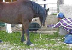 Within a few tries, the horse will usually hold his foot for a