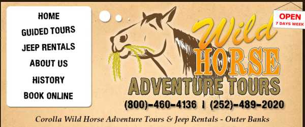 Tours are available to experience the Corolla Wild Horses at Wild Horse Adventure Tours